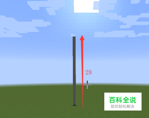 首先我们用任意方块搭建一个高28格的柱子。这样保证怪物一定会被摔死。