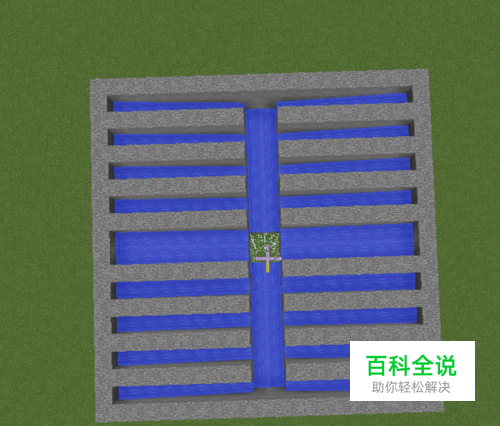 将每个沟渠中都倒入水,两格的沟渠倒2桶水。