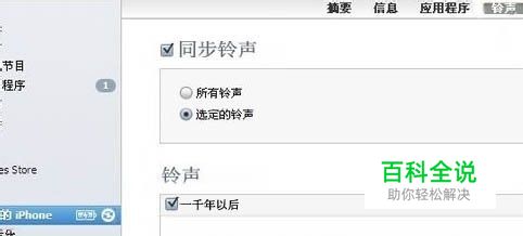 铃声导入itunes 1.路径:铃声——文件——将文件添加到资料库——选定歌曲(一千年以后)——打开。 2.插上手机,选择铃声同步。