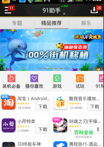 打开91助手后找到搜索功能,在下面工具栏的倒数第二个,及放大镜图标的