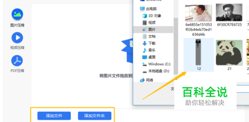 添加需要压缩的图片文件,点击添加文件或者添加文件夹的按钮就可以选择文件。