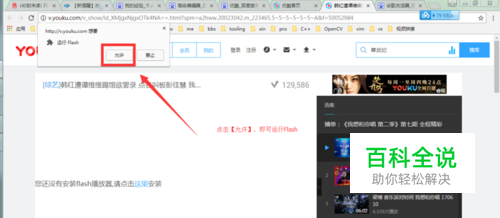 根据上面的提示,我们点击【允许】按钮,也是可以启动Flash插件的,但是每次都这样做,会浪费时间,更重要的是会影响心情-_-!