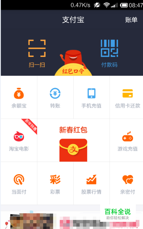 打开支付宝,进入主界面点击右下角菜单栏里的【财富】选项。