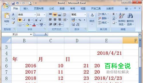 我们还可以先在表格中做出年月日的数值表,选择一个日期后面的单元格,如图所示。