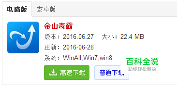 第一,在你的电脑下载“金山毒霸”,然后点击安装到电脑桌面。