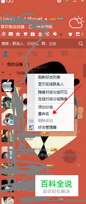 然后任意选定一个分组,鼠标右键点击就会出现重命名这个选项,然后点击就课可以输入你想给这个分组的命名啦。