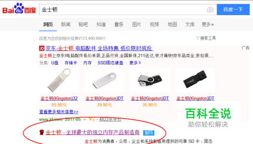 首先打开百度搜索“金士顿”,找到金士顿的官方网站,并打开