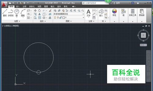 打开要阵列的图,如图我要将大圆上的小圆,用环形阵列的方式,在大圆上画6个圆出来。