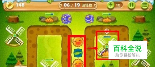 2、清除道具得到的2个太阳塔和瓶子炮,速度提升太阳塔的等级帮我们度过中前期的小怪压力。