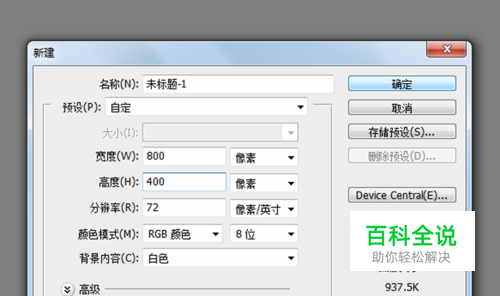 首先启动Photoshop cs,新建一个文档,设置大小为800*400,背景颜色为白色,分辨率为72.