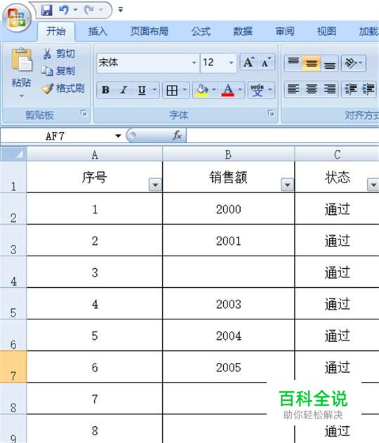 点击“销售额”下面的三角形会看到下拉框里面有全选和空白的选项,见下图