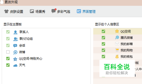 点击QQ主界面上方的“+”号,打开界面管理。或者打开系统设置,找到主界面,然后再打开界面管理器即可。
