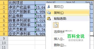 (二)、任选测试数据中的一单元格,点击右键,弹出图二菜单,选择复制。