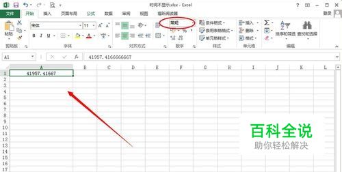 仔细观察此单元格有可能是日期类型,调整为常规,这时单元格就不是日期和时间的值了,而是一个小数,这当然不是我们想要的结果;