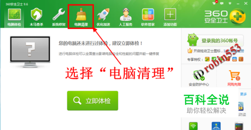 打开电脑的360安全卫士,然后点击软件界面上方的“ 电脑清理”选项。