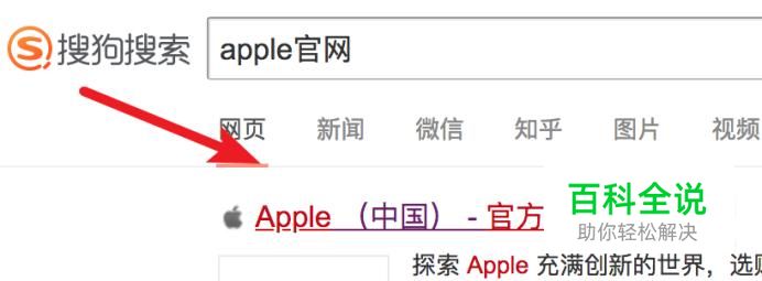打开搜狗搜索,输入‘apple官网’,然后点击打开官方网站。