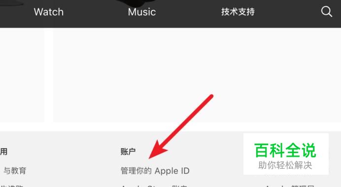 打开官方网站后,点击页面下方的‘管理你的Apple ID’链接。