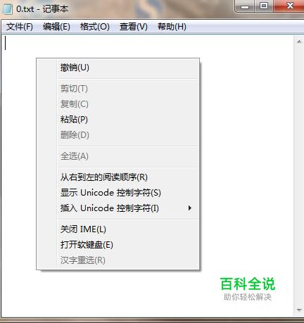 然后右击空白区域,点击插入Unicode控制字符,如下图所示。