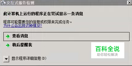 莫名其妙出现一个对话框,如下图提示。 交互式服务检测拒绝。很多用户不知道该怎么弄掉,问如何将其关闭。