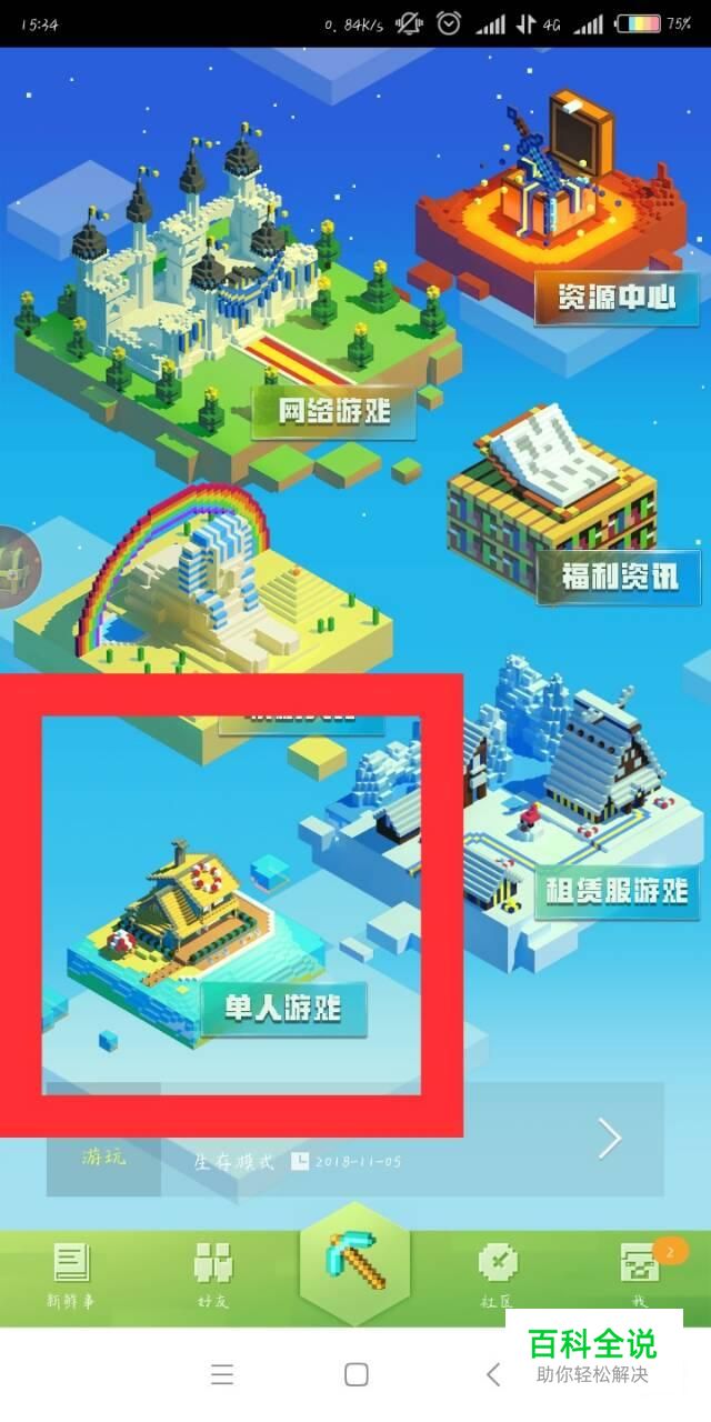 进入单人游戏后 点击“启动”启动你想进入的世界