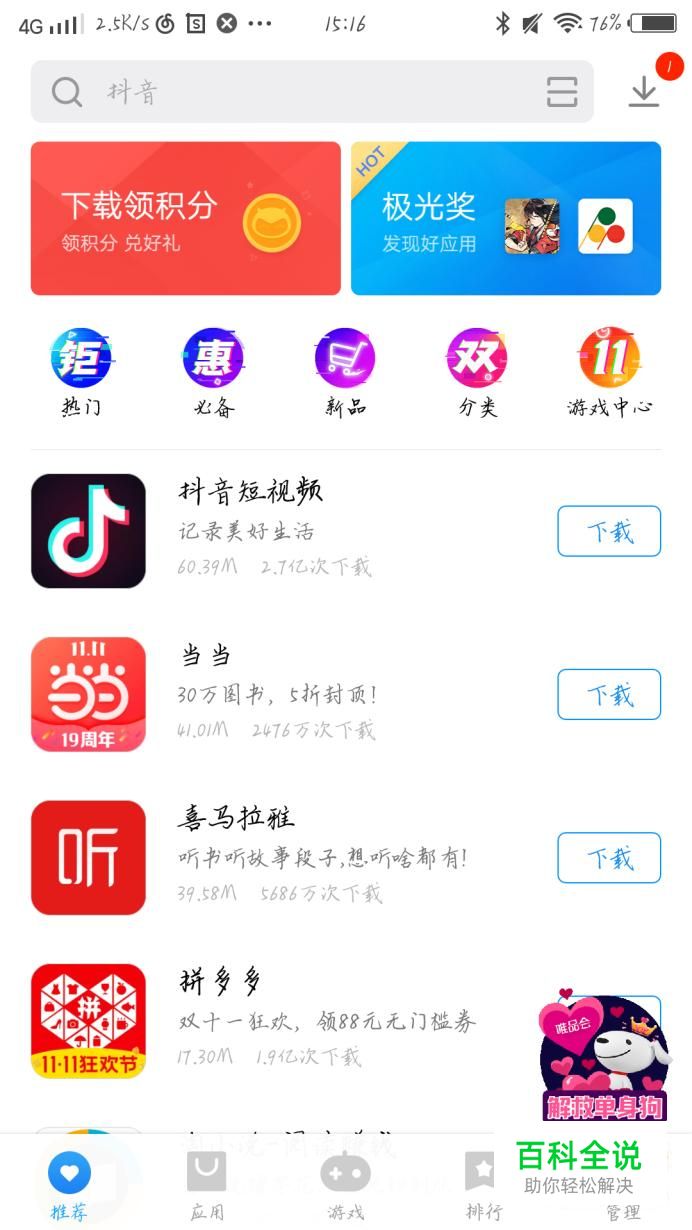 在搜索框中输入“抖音”几个字,点击进入,你会看到出现一个新的界面,如图1所示。