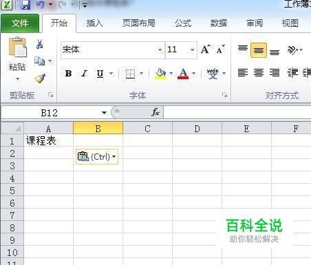 首先,打开Excel2010,在第一个单元格中输入课程表三字。