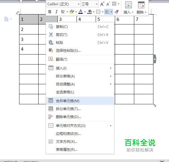 或者选中要合并的单元格,点击鼠标弹出对话框,看到“合并单元格”点击也可完成合并单元格的操作。