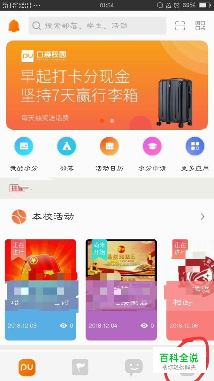 pu口袋校园app如何在报名活动之后取消活动的报名,具体操作步骤如下: