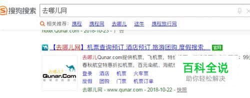 打开浏览器,在搜索框输入“去哪儿网”,然后点击官方认证的官网进入页面。