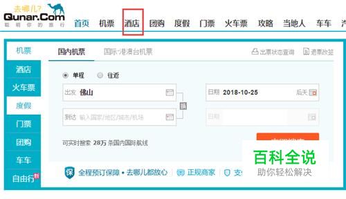 进入去哪儿网页面后,点击状态栏中的“酒店”