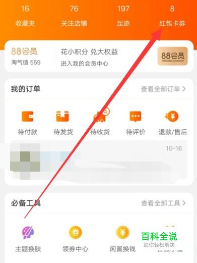 进入之后,选择“红包卡卷”,进入下一页面,如图所示。