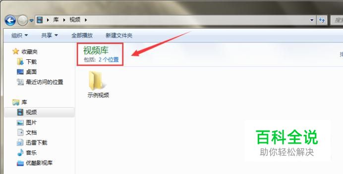 点击打开要更换保存路径的文件夹,这里打开的是“视频”,如图,我们可以看到“包括2个位置”,点击该字样。