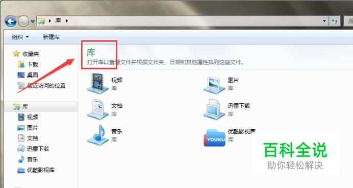 在电脑中打开“库”文件夹。