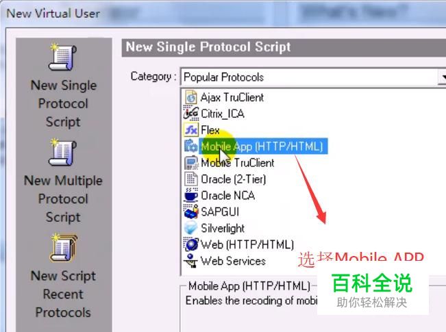 接下来在弹出的新建脚本界面中选择Mobile App类型,如下图所示