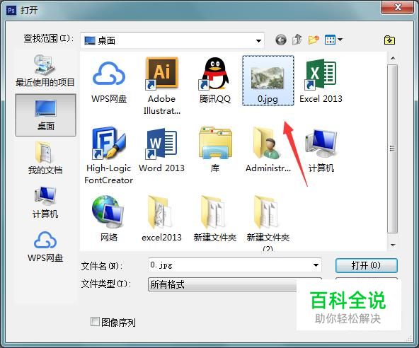 打开ps按下Ctrl+O键在弹出的对话框内找到我们的图片,如图所示: