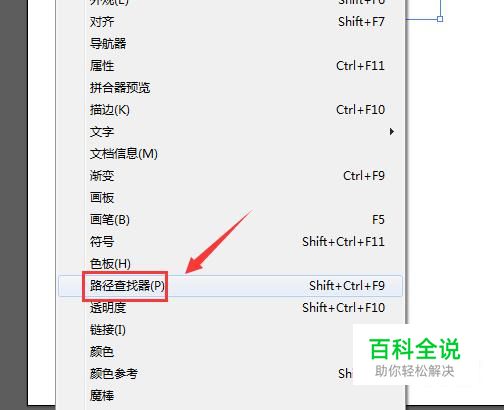 选择我们的图形,然后在窗口菜单里找到路径查找器选项,如图所示: