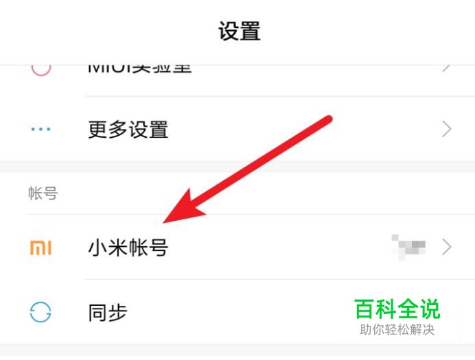 在设置页面的首页,往下拉一点,就可以看到一个‘小米账号’的选项,点击进入。