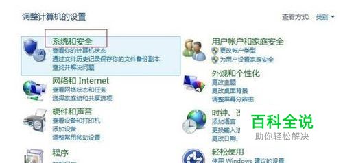 打开控制面板,选择“系统和安全”,如下图: