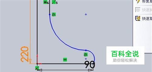 双击步骤4的圆弧,在左边的 PropertyManager 中将参数A设为90。