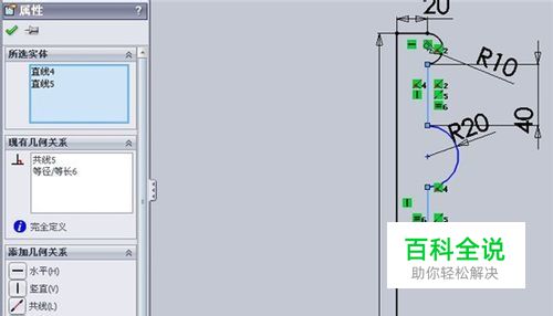 现在添加几何关系和切线弧。