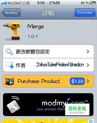 手机必须越狱过,然后打开cydia搜索Merge并下载安装