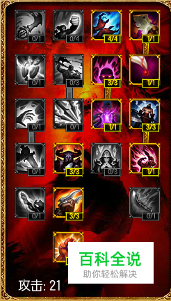 21点攻击天赋; 中单法师毫无疑问点出21点攻击天赋,特别是复仇焰魂由于有着被动技能的存在,导致其前期伤害非常高,点出21点攻击天赋能够使得我们在对线期间方便补兵和消耗。