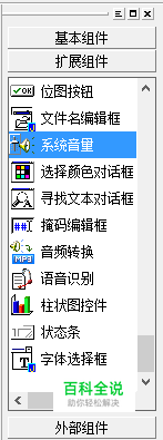 在扩展组件中找到系统音量,拖动并创建。