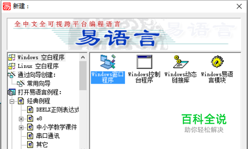 首先打开易语言,创建windows窗口程序。