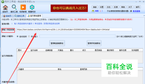 输入要查询排名的宝贝链接。