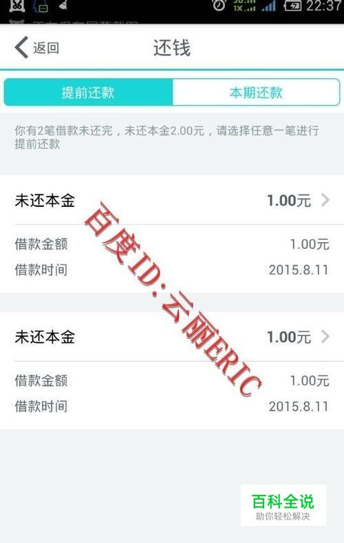 输入你要还多少钱。 我为了测试只贷了一块钱。一次性全部还清。