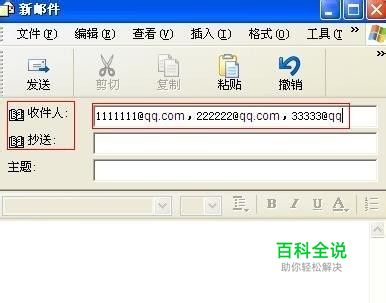 在“收件人”框中填写收件人的电子邮件地址,如果你要想把信件同时发给多个人时,可输入多个人的地址,只在地址之间分别用逗号或分号隔开就行。若要从地址薄中添加电子邮件地址,就单击“收件人”和“抄送人”旁的书本图标,然后在里面找。