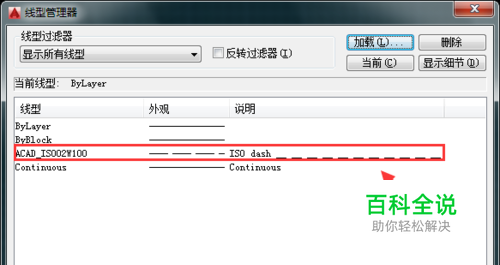点击加载选项,在弹出的对话框内找到我们需要的线型,如图所示:
