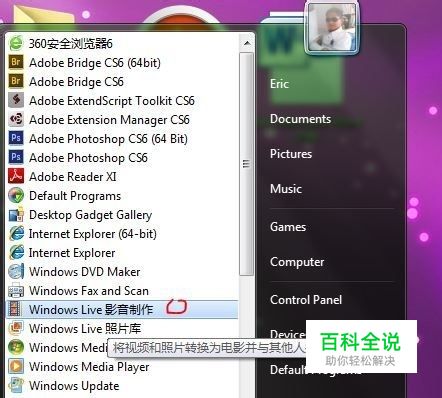 首先点击开始,然后单击所有程序