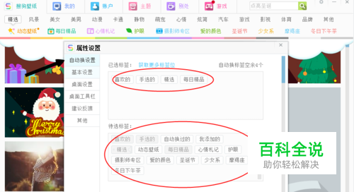 第四步,点击“自动换设置”,这里就可以自由更换我们喜欢的壁纸类型,大概有数十种之多,可以自由添加或者去除。